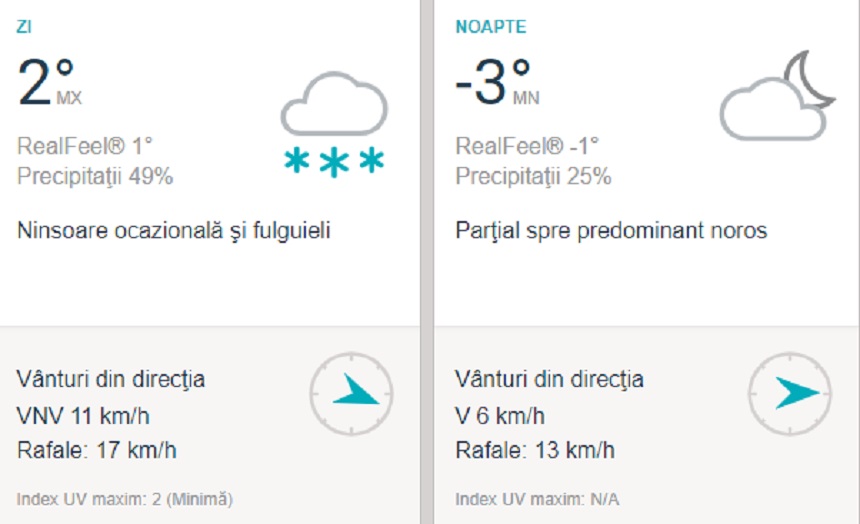 La munte, aşa cum s-a întâmplat şi în ultima perioadă, va ninge. Tempeteratura maximă va fi de 2 grade Celsius.