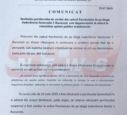 Recent, procurorii din cadrul Parchetului de pe lângă Judecătoria Sectorului 1 București au dispus trimiterea în judecată, în stare de libertate, a lui Dani Mocanu, manelistul fiind acuzat de incitare la ură sau discriminare, faptă pedepsită cu închisoare de la 6 luni la 3 ani sau cu amendă. "În data de 24.07.2019 inculpatul a încărcat pe platforma online YouTube un videoclip filmat și montat anterior, prin intermediul căruia a instigat publicul larg la ură și discriminare împotriva femeilor. La finalul lunii noiembrie 2019, videoclipul înregistra peste 18 milioane de vizualizări și a generat venituri de aproximativ 34.000 de USD, ce au constat în drepturi de publicitate aferente videoclipului", au explicat procurorii.