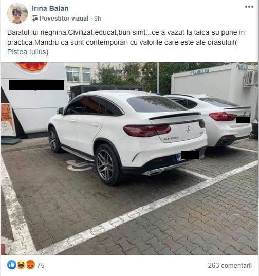 După ce poza a devenit virală iar sute de oameni l-au asaltat cu „urări”, juniorul cu dizabilități la capitolul parcare în linie dreaptă a recunoscut, cu chiu, cu vai, că a călcat strâmb, dar a ținut morțiș să se și victimizeze.