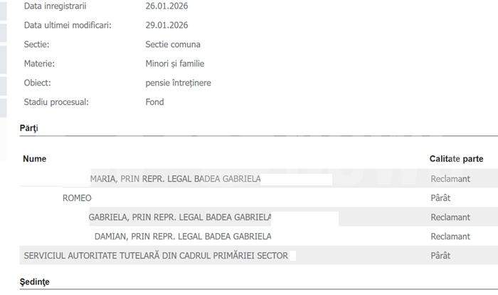 Afacerista autointitulată „Regina Întunericului”, fiindcă deține o firmă de pompe funebre, a decis, recent, să îl cheme în fa judecătorilor pe fostul soț. Gabriela Badea a deschis procesul în numele celor trei copii, în calitate de reprezentant legal, iar în cererea de chemare în judecată a solicitat ca bărbatul să le achite minorilor pensiile alimentare pe care le datorează, conform legii. Ceea ce sugerează că bărbatul nu ar fi respectat angajamentele luate în fața notarului, unde a fost tranșat divorțul.