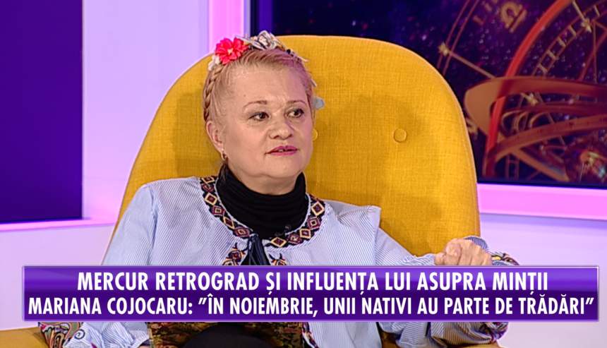 Invitată la „Lumea nevăzută”, emisiune difuzată astăzi, începând cu ora 15.45, la Antena Stars, Mariana Cojocaru vorbeşte despre cum ne influenţează planetele la final de an. „Este un sfârşit de an foarte tensionat. Mercur retrograd este o planetă a celor care manipulează. Este o planetă care, în general, nu dă deschidere. O să observaţi cu toţii că vor ieşi tot felul de certuri, de tensiuni, la nivel macro: social, politic, dar şi în familiile noastre. (...) Mercur retrograd ne influenţează modul în care gândim. Se spune că atrată cartonaşe galbene şi roşii atunci când vorbim de parteneriate, colaborări, căsătorii între oameni care se cred compatibili dar, în realitate, după un timp, îşi dau seama că nu sunt compatibili. Şi poţi să te îndrăgosteşti, să te căsătoreşti şi apoi intră mercur retrograd şi atacă. Atunci când vorbim de gândire, mercur retrograd este un mic copil. Pe 26 decembrie vom avea o eclipsă de lună care este şi mai importantă şi care vine şi îşi pune amprenta asupra karmei unui om. Activează nişte lecţii karmice. Şi atunci nu va fi mercur retrograd. O să vezi că atunci când oamenii se adună de sărbători, atunci încep şi răfuieli. Pentru că toată ziua ei sunt la muncă şi fac tot felul de lucruri, dar când se întâlnesc şi vine eclipsa se întâmplă ceva”, declară Mariana Cojocaru.