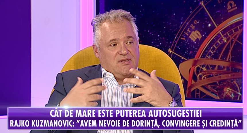 “În primul rând, ceea ce este important ca şi prim pas să fim atenţi la ce spunem şi ce vorbim pentru că ceea ce spunem, ceea ce vorbim este rezultatul gândului. Şi, implicit, corectarea vorbirii. Aşa că, ceea ce întotdeauna recomand, primul lucru este să scoatem «nu-urile». În limba vorbită sunt foarte multe «nu-uri», sunt fraze care încep cu «nu» sau le finalizăm cu «nu», cerând o aprobare. Se poate face frază şi fără «nu». Nu-urile repetitive, la un moment dat, îi dau creierului această impresie, că lumea te refuză, că trebuie să faci mai mult, implicit trebuie să te străduieşti, să te stresezi mai mult. Sau, în loc să spun «aşa este» spunem «nu-i aşa că..?», «nu vrei?», «nu ai chef?», «nu ţi se pare?». Asta este primul lucru. Cu excepţia nu-urilor care chiar înseamnă «nu». Ca să nu intrăm în extrema cealaltă. Pe de altă parte, sunt cuvintele pe care le folosim într-un mod eronat, cum ar fi, de exemplu «e greu», «viaţa e grea» şi atunci, dacă repeţi chestia asta, o auzi repetitiv din copilărie, după care începi să o repeţi și tu în gând, prin atitudine, ne autoprogramăm la un moment dat şi nu trebuie să ne mire că avem probleme”, continuă Rajko Kuzmanovici.