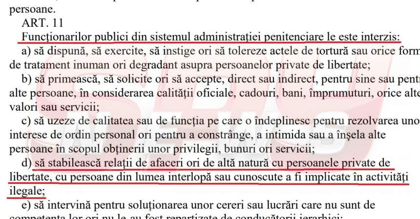 Un alt articol din "fiţuica" amintită prevede că angajatul/-a ANP are obligaţia "să informeze şeful ierarhic despre existenţa unui conflict de interese privind exercitarea atribuţiilor de serviciu, în condiţiile legii". Sanchi!