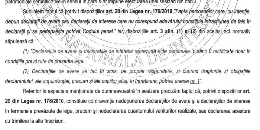 După ce au verificat cu atenție documentele buclucașe, inspectorii ANI au ajuns la concluzia că faptele nu au fost comise cu intenție, așadar nu pot intra sub incidența prevederilor Codului Penal. Adică a fost o simplă greșeală. Ca atunci când un șofer neatent trece pe culoarea roșie a semaforului. Spre deosebire de soțul șefei din poliție, șoferul respectiv primește, totuși, avertisment sau amendă, deși nu a comis fapta cu intenție.