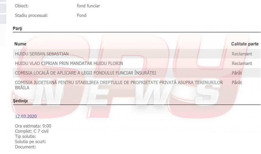 Fraţii Huidu şi tatăl lor sunt citaţi în faţa magistraţilor, într-un dosar în care se judecă împărţirea unor terenuri moştenite în judeţul Brăila.