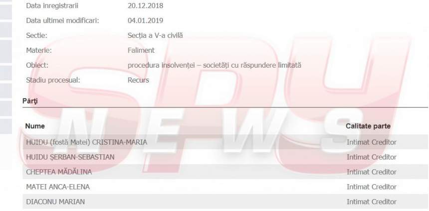 Şerban Huidu a fost citat, recent, într-un proces, alături de soţia sa şi alte câteva zeci de persoane, pentru a recupera banii de la o societate comercială aflată în insolvenţă. Huidu şi nevasta lui încearcă, astfel, să recupereze banii de la firma respectivă, iar dosarul înregistrat în decembrie 2018 va avea primul termen peste doar câteva zile.