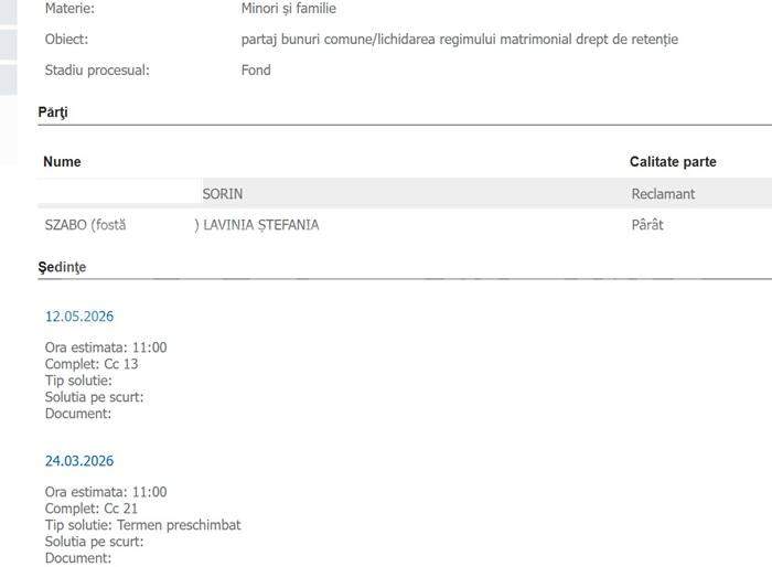 În procesul de partaj a avut loc, însă, un „fenomen paranormal”, luna trecută: deși Ștefania Szabo este moartă din octombrie 2025, bărbatul a decis să meargă mai departe cu procesul, iar judecătorii au stabilit un nou termen, pe 12 mai. Astfel, doctorița moartă este citată, acum, în fața instanței, pentru a-i da partea de avere fostului soț.