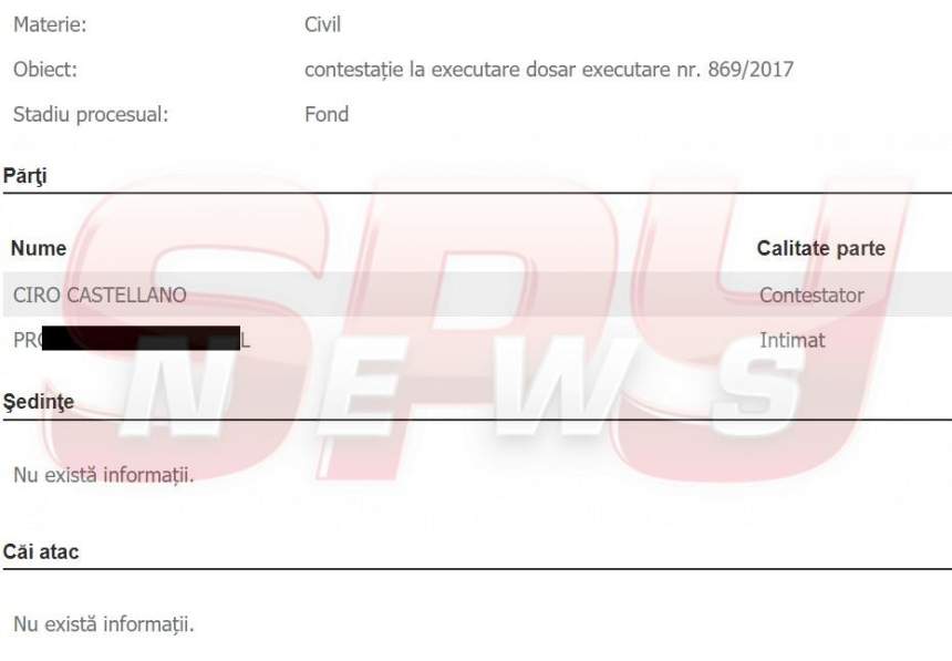 Socrul Antoniei, Ciro Castellano, a deschis recent un proces la Judecătoria Sectorului 4, prin care contestă executarea silită dispusă într-un alt dosar. Potrivit informaţiilor intrate în posesia reporterilor SPYNEWS, socrul Antoniei ar fi "uitat" să achite comisioanele şi taxele pe care le datora unei instituţii bancare, după ce aceasta i-a emis, în urmă cu 11 ani, un card "gold". Cu toate că încearcă să se eschiveze de la plata datoriilor, Ciro nu pare să o ducă prea rău cu banii, el investind în ultima perioadă sume consistente în mai multe afaceri.