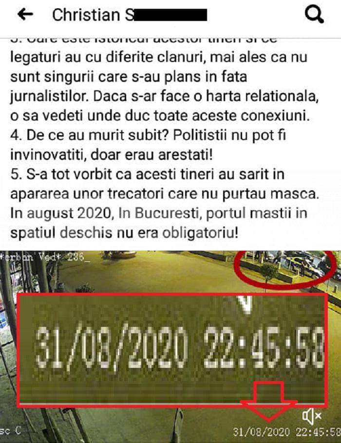 Mai mult, nașul lui Șeicaru, care susține că luptă pentru dreptate, îi ține în șah pe infractorii de la Secția 16, postând, recent, câteva imagini surprinse de camerele de supraveghere ale unui magazin de la Eroii Revoluției. În imagini apar, potrivit justițiarului, victimele lui Șeicaru, în jurul orei 22.45, certându-se cu polițiștii, cu puțin timp înainte de a fi bătute, încătușate și gazate, în dubele Ministerului de Interne. Astfel, nașul lui Șeicaru, pare că le-a transmis tuturor un mesaj clar, că deține și filmările de la ora 01.45, când cei doi bărbați au fost răpiți de pe stradă și torturați.