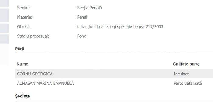 Marina Almășan îl acuză pe Cornu de încălcarea unui ordin de protecție, infracțiune care se pedepsește cu închisoare de la 6 luni la 5 ani.
