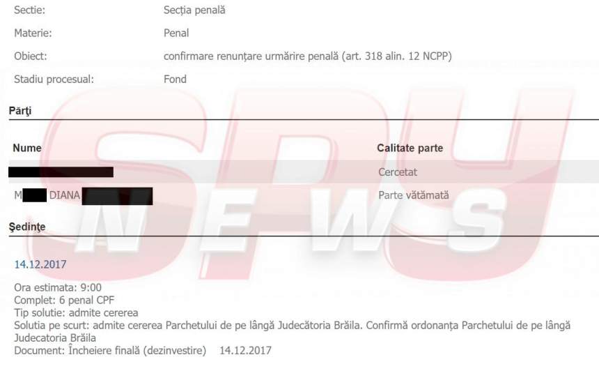 După o anchetă de mântuială, Parchetul Brăila a decis să renunţe la cercetarea penală, pe motiv că suspectul – rudă cu ofiţeri "grei" din poliţie şi cu o procuroare - a fost cooperant şi a promis că nu o omoară pe victimă. Asta deşi la dosar fuseseră ataşate capturi cu SMS-uri şi înregistrări audio din care rezulta clar că "afaceristul" avertiza că "îi va rupe capul" clientei.