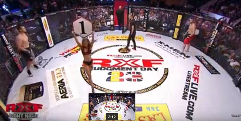 Blonda și-a ajutat iubitul să se lanseze în cușca de MMA, însă gestul ei nu s-a dovedit unul prea inspirat. Nici sărutul senzual pe care i l-a dat înainte ca acesta să intre în cușcă nu i-a purtat noroc, în condițiile în care a abandonat după numai câteva zeci de secunde, fiind scos de arbitru din mâinele experimentatului său adversar, care îl țintuise la pământ și îl lovea cu sete.