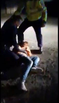 Pe fimări se vede un bărbat imobilizat la pământ pentru a fi încătuşat, în jurul poliţiştilor, mai mulţi bărbaţi se arată nemulţumiţi de ce se întâmplă. Vocea persoanei încătușate se aude pe fundal: „Filmaţi-mă!... Pentru ce? Eu nu mă opun. Nu mă opun”.