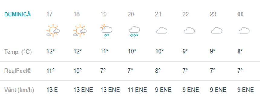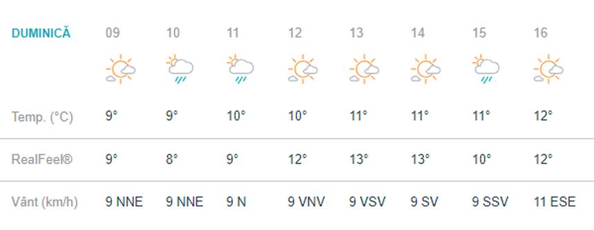 Ploile vor începe să-şi facă simţită prezenţa de la ora 10.00, urmând ca de la ora 12.00 până la 14.00 să înceteze, pentru ca mai apoi să urmeze, din nou, o serie de precipitaţii, astfel că dacă ieşiţi din case e bine să nu vă uitaţi umbrelele.