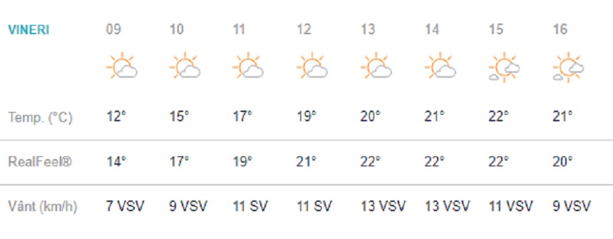 Și pe parcursul nopții gradele vor fi prietenoase, cu temperaturi situate între 10 și 8 grade, la ora 00:00.