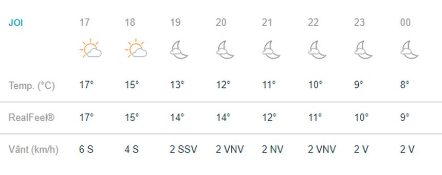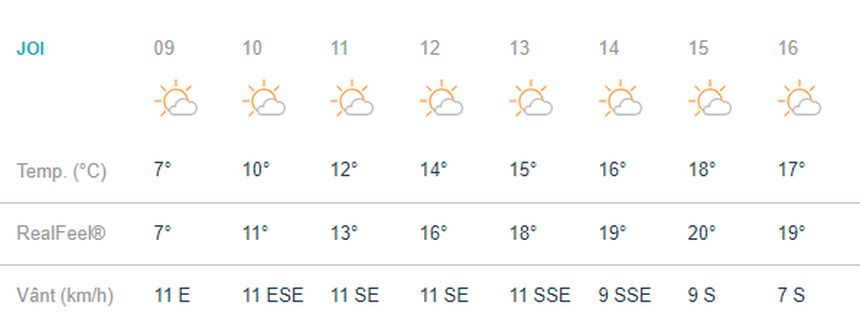Cele mai puţine grade vor fi dimineaţa, la ora 09.00, atunci când bucureştenii vor simţi 7 grade. Lucrurile se modifică de la o oră la alta, iar în cursul zilei de joi, 7 martie, se va ajunge la 18 grade.