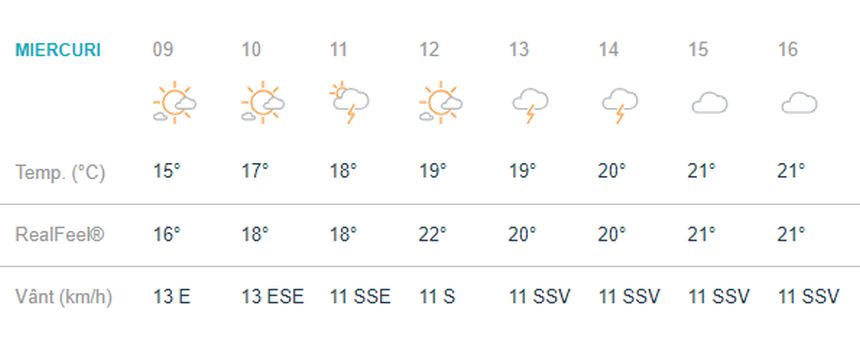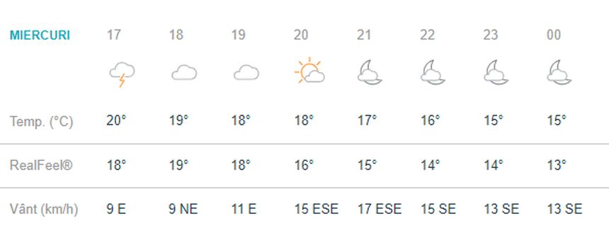 Lucrurile nu se anunţă tocmai bune pentru locuitorii Capitalei, miercuri, 15 mai. Norii îşi fac apariţia încă de la primele ore, iar la 09.00 dimineaţa, nu se vor simţi mai mult de 15 grade. Treptat, mercurul va mai urca în termometre, iar maxima zilei va ajunge la 21 de grade, la ora 15.00.