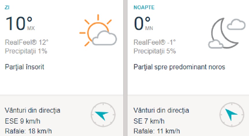 La primele ore ale dimineții, în termometre nu se vor înregista mai mult de 4 grade Celsius și este posibil să se înregistreze chiar ploi destul de slabe. Începând cu ora 10, temperatuile vor mai crește puțin, dar cu doar câteva grade în plus.