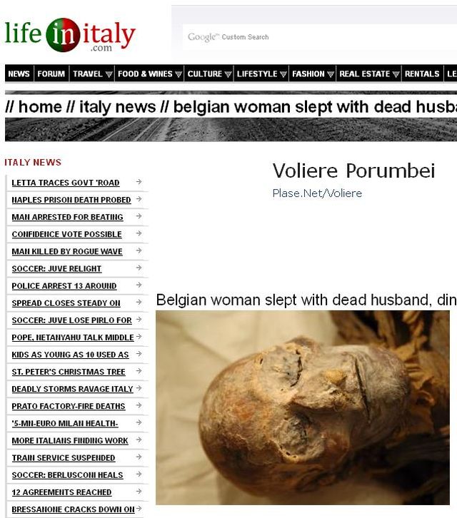 Bărbatul în vârstă de 79 de ani a murit de astm, însă soţiei lui i-a fost atât de greu să se despartă de acesta, încât a făcut un gest greu de imaginat. Timp de un an de zile, femeia a dormit în pat cu cadavrul soţului. Poliţiştii au rămas înmărmuriţi atunci când au ajuns la locul faptei, ei fiind alertaţi de către proprietarii în care cei doi locuiau cu chirie şi nu-şi mai achitaseră dările, potrivit lifeinitaly.com