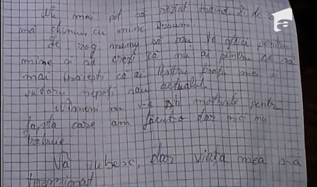Conform unor surse din rândul anchetatorilor, într-unul dintre biletele lăsate minora şi-ar fi cerut scuze părinţilor pentru fapta sa şi ar fi precizat că vrea sa fie înmormântată îmbrăcată în mireasă şi să fie condusă pe ultimul drum de tot satul. Fata nu ar fi precizat însă ce anume a determinat-o să se sinucidă. Mama ei s-a ocupat miercuri de cele necesare pentru a-i îndeplini ultima dorinţă. "M-am ocupat de tot, i-am cumpărat o rochie de mireasă, voal şi coroniţă şi un sicriu alb.", a conchis femeia, îndurerată.
