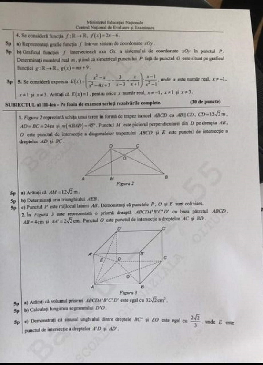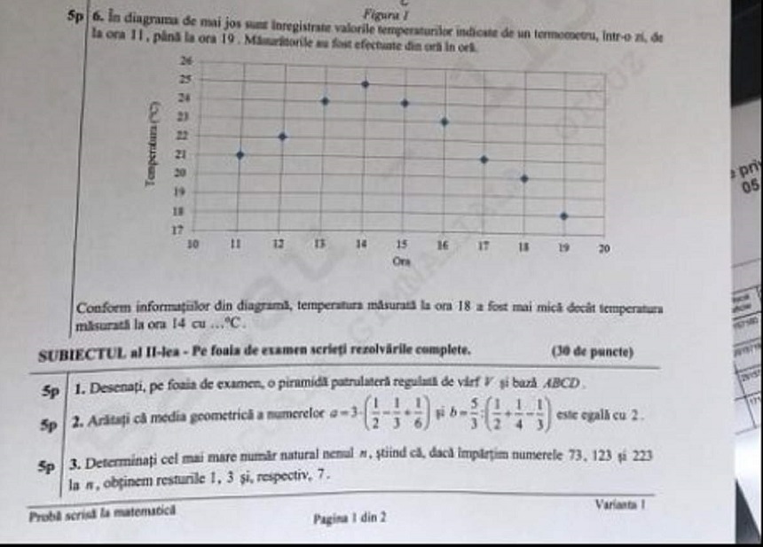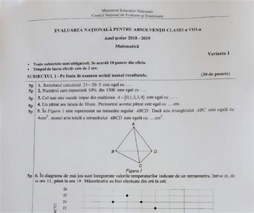 Iată ce subiecte au avut de rezolvat elevii, astăzi, la Evaluarea Naţionala - disciplina matematică!