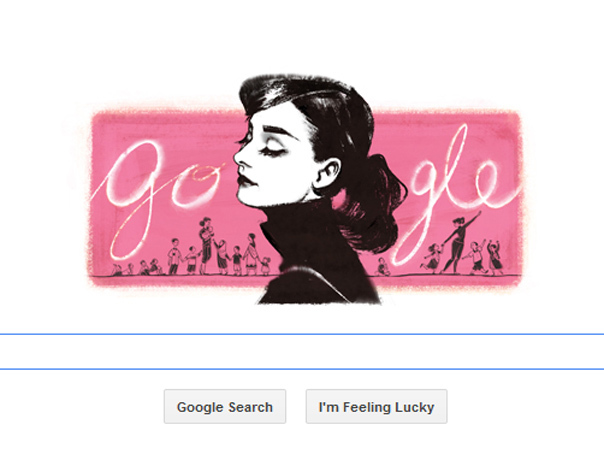 Astfel, toţi cei care au deschis astăzi Google au putut vedea noul logo al mototrului de căutare care prezintă profilul chipului actriţei Audrey Hepburn, reprezentat sub forma unui desen alb-negru. De asemenea, cuvântul "Google" apare scris pe un fundal roz, în spatele chipului actriţei. Pe acest fundal roz, artista, fostă ambasadoare a UNICEF, apare în mai multe scene alături de copii din diverse colţuri ale lumii.