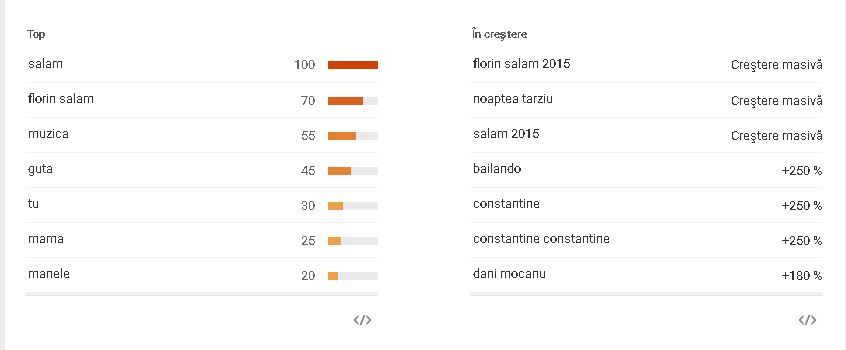 Pe Youtube, maneliştii domină detaşat. "Salam" şi "Florin Salam" sunt pe primele două locuri, "muzică" este pe trei şi "guţă" pe locul patru.