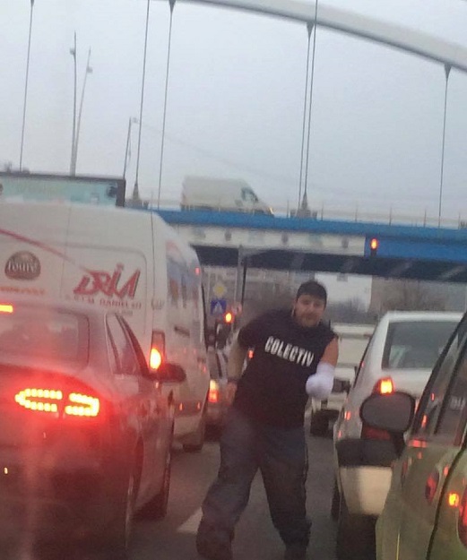 Evenimentul din data de 31 octombrie a marcat România, după ce 61 de tineri şi-au pierdut viaţa în incendiul dintr-un club din Capitală. Astăzi, în timp ce alţi zeci de tineri se zbat între viaţă şi moarte, un cerşetor se foloseşte de episodul nefericit pentru a scoate nişte bani din buzunarele celor mai miloşi. Un bărbat a fost surprins pe străzile Bucureştiului echipat cu un tricou pe care scrie "Colectiv", cu un braţ bandajat, spunându-le trecătorilor că este o victimă a incendiului.