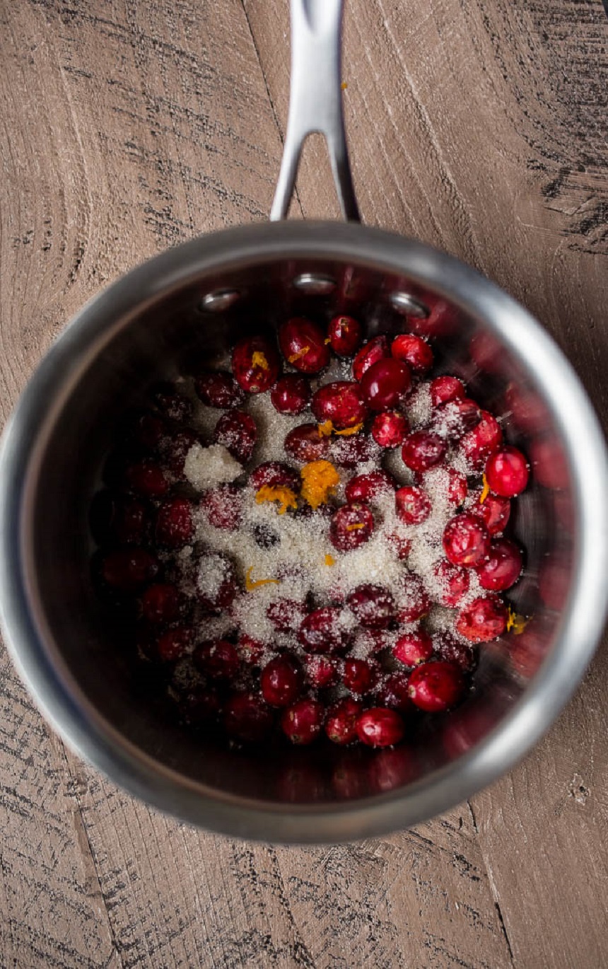 În timp ce turta dulce se răceşte se prepară glazura de merişoare. Se pun merişoarele, coaja de portocale, şi apaîntr-o cratiţă la foc mic. Se mestecă constant şi se zdrobesc merişoarele atunci când acestea încep să se înmoaie. Se fierbe până amestecul devine omogen, asemănător unui gem. După ce amestecul de merişoare este răcit se mixează în vasul unui blander alturi de zahărul organic. Se adaugă glazura peste turta dulce, iar deasupra se presară nucă de cosos. Se serveşc imediat.