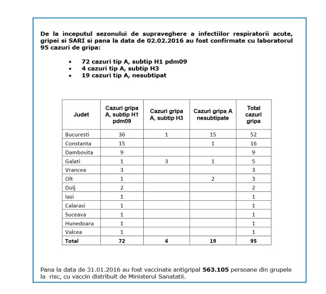 În ceea ce privește Capitala, 36 de persoane infectate cu virusul gripal A/H1N au fost confirmate.