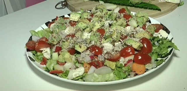 "O salată e uşor de făcut, salatele sunt raw vegane şi am zis că toată lumea preferă salatele, să nu facem un preparat complicat şi ceva uşor de făcut acasă. Am zis s-o facem un pic mai complexă şi mai ales acum c-au început să iasă tot felul de verdeţuri şi piaţa este plină de unde putem să alegem, să ne luăm cât mai mult porţia de sănătate," a declarat Carmen Negoiţă, în exclusivitate pentru Antena Stars.