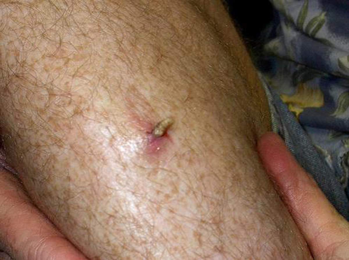 "Atingeam cu limba acea umflătură de pe buză şi simţeam că ceva este acolo. Uneori, simţeam cum trece pe interiorul obrajilor", a povestit pe Jonathan. În cele din urmă, acesta a decis să rezolve singur problema. A făcut o incizie pe buză, scoţând un vierme din interior! A apelat imediat la un specialist, care i-a confirmat că este vorba despre un parazit, Gongylonema pulchruma, întâlnit de obicei la bovine.