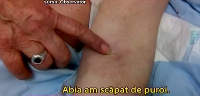 Soţia lui Matei este disperată şi vrea ca medicii să plătească pentru asta. "Au spus să-l las să moară, să nu mă mai chinuiesc cu el! A luat un streptococ după ce i-a făcut o injecţie. O bacterie care îi ataca grav organismul! Am mers pentru a-i face un tratament, îl dureau picioarele. I s-a pus diagnosticul artrită şi l-au internat. A făcut puroi, mi s-a spus că e un stafilococ. Va fi infirm pe viaţă!", a spus soţia sa.