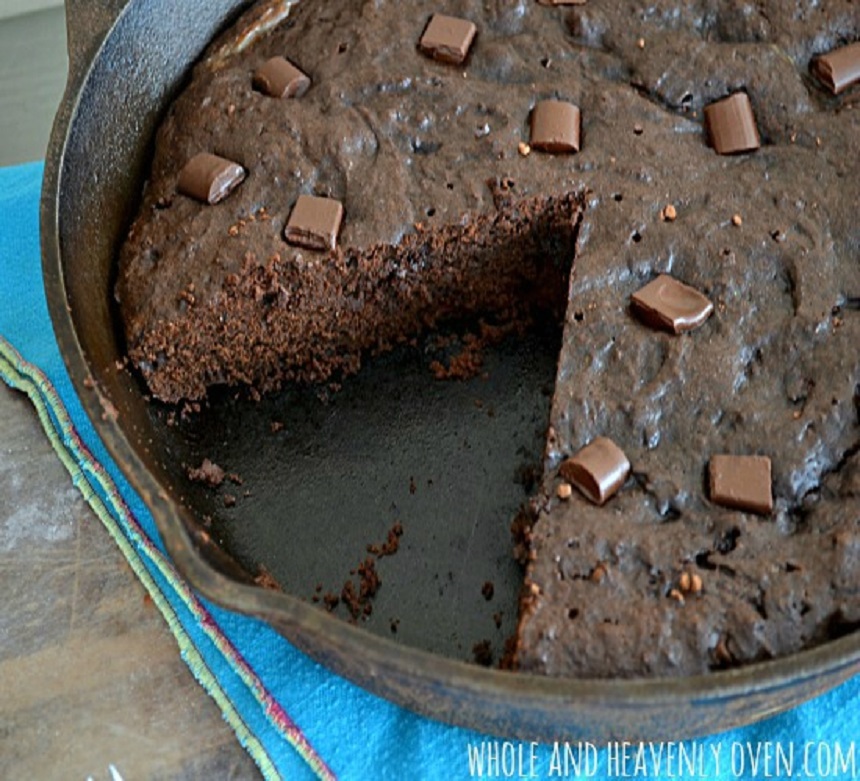 Într-un castron se amestecă făina, pudra de cacao, praful de copt și sarea. Într-un alt vas se amestecă uleiul, ouăle și esența de vanilie. Combinați amestecul de făină cu cel denulei și amestecă pănă ce se obține o compoziție omogenă. Apoi se toarnă în mod uniform în tava de copt, iar deasupra se adaugă fulgii de ciocolată. Se introduce la cuptor pentru aproximativ 25-28 de minute. Se lasă să se răcească complet înainte de servire.