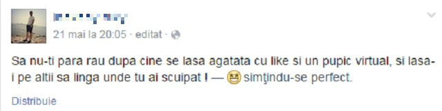 În ultima perioadă, tânărul a avut o serie de postări pe pagina personală de Facebook, din care reieşea suferinţa cumplită prin care trece. Într-unul din mesaje, mânat de gelozie, el arunca vorbe dure la adresa celei pe care o iubea.