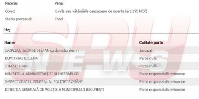 Potrivit informaţiilor obţinute de reporterii spynews.ro, în cazul în care poliţistul George Ştefan Isopescu va fi găsit vinovat de moartea lui Daniel Dumitrache, Ministerul Administraţiei şi Internelor va fi cel care va achita daunele materiale şi morale cerute de familia victimei. Suma cerută este de în acest moment de un milion de euro. Evident, banii vor veni din bugetul statului aşa că - într-un final - fiecare dintre noi va plăti pentru "profesionalismul" agentului Isopescu.
