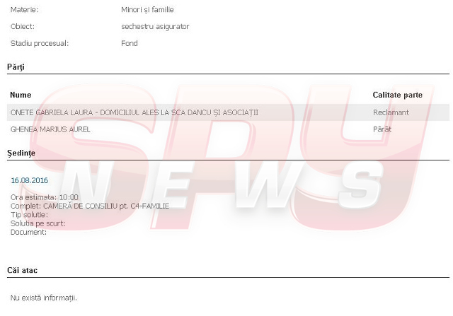 Marius Ghenea şi Gabriela Onete au divorţat la mijlocul lunii noiembrie 2014, prin decizia Curţii de Apel Bucureşti. Tot atunci, judecătorii au stabilit că trebuie să omul de afaceri trebuie să plătească 1.700 de euro pensie alimentară. Băieţelul celor doi a rămas în îngrijirea mamei. Cauza rupturii dintre cei doi ar fi fost o relaţie extraconjugală a omului de afaceri.