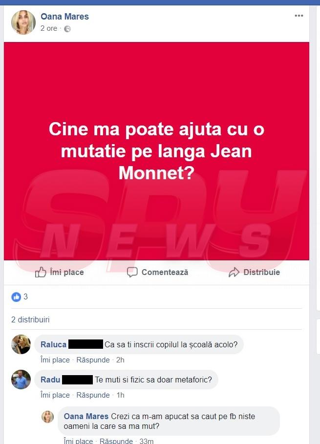 Fără a se gândi vreo clipă la urmări, Oana Mareş a făcut, ieri, un apel public la persoanele care ar putea să o ajute să falsifice un document oficial. "Cine mă poate ajuta cu o mutaţie lângă Jean Monnet?", a fost anunţul făcut de vedetă, care a explicat de ce este obligată să apeleze la o astfel de strategie cu iz de faptă penală: pentru a-şi putea înscrie copilul la unitatea de învăţământ amintită, pe motiv că ar aparţine de aceasta.