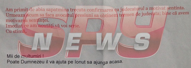 Dumitru Gologan, tatăl românului condamnat la moarte, într-o închisoare din Malaezia, se roagă zi şi noapte să traiască momentul când îşi va strânge din nou la piept singurul băiat pe care îl are. O rază de speranţă s-a arătat la începutul lunii, când Ionuţ şi-a anunţat părintele şi bunica că avocatul care îl reprezintă a reuşit să obţină un nou termen de judecată, anul viitor. "Judecătorul a motivat sentinţa şi a dat un nou termen în februarie. Sper să scape de condamnarea la moarte", ne-a spus tatăl băiatului.