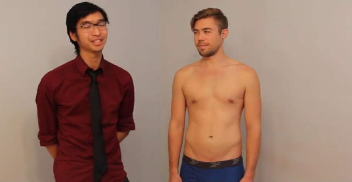 Aleks Malczewski, un voluntar homosexual, a acceptat provocarea de a se lăsa atins în zonele intime de către alţi trei bărbaţi.