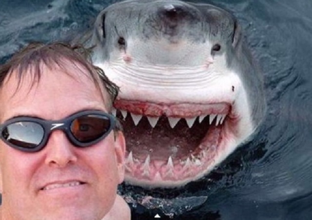 De o surpriză mai puţin plăcută a avut parte un bărbat, în momentul în care a vrut să-şi facă un selfie, în care să surprindă oceanul şi rechinul care se perinda pe lângă vas. Atunci când se aştepta mai puţin, Marele Alb a ieşit la suprafaţă şi a "zâmbit" ameninţător cu dinţii ascuţiţi.