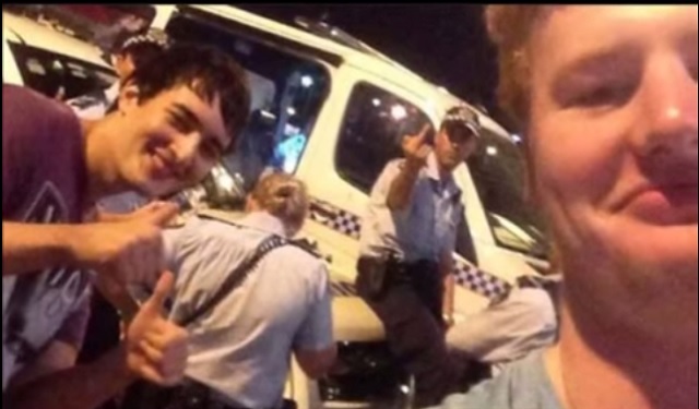 Mai mulţi tineri au fost opriţi de poliţie, în miez de noapte, însă asta nu speriat deloc. Mai mult, ei au făcut haz de necaz şi au realizat un selfie, în care să-i surprindă pe oamenii legii pe fundal. Mare le-a fost surpriza atunci când au constatat că unul din poliţişti le-a arătat degetul mijlociu, în semn de "entuziasm".