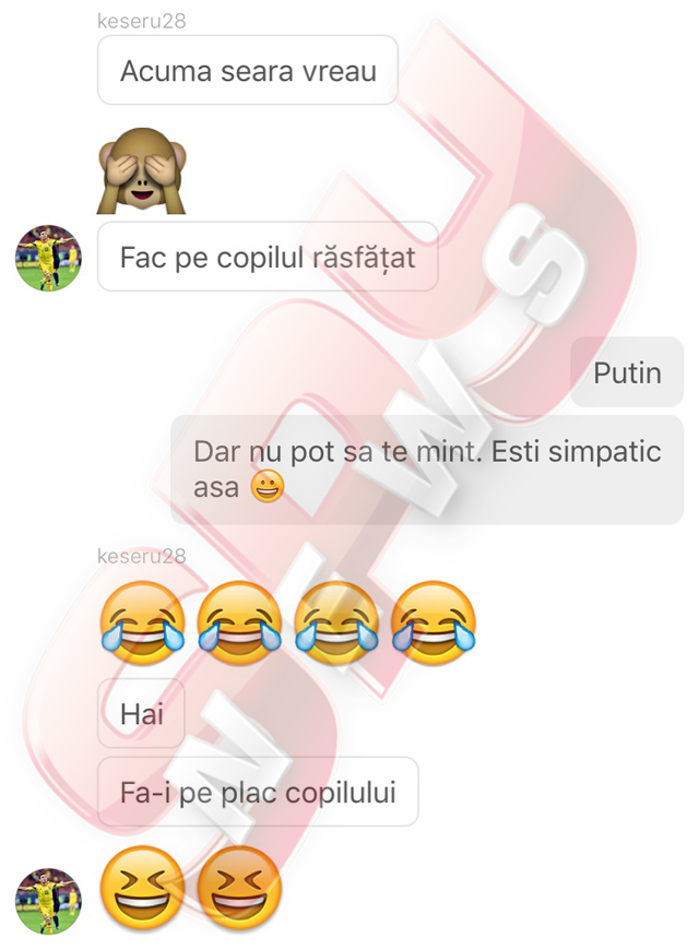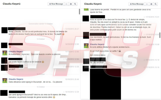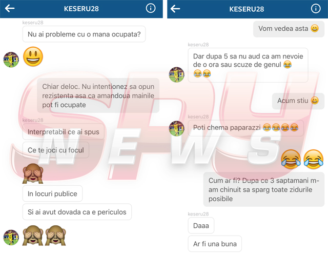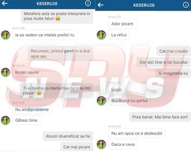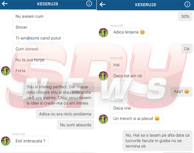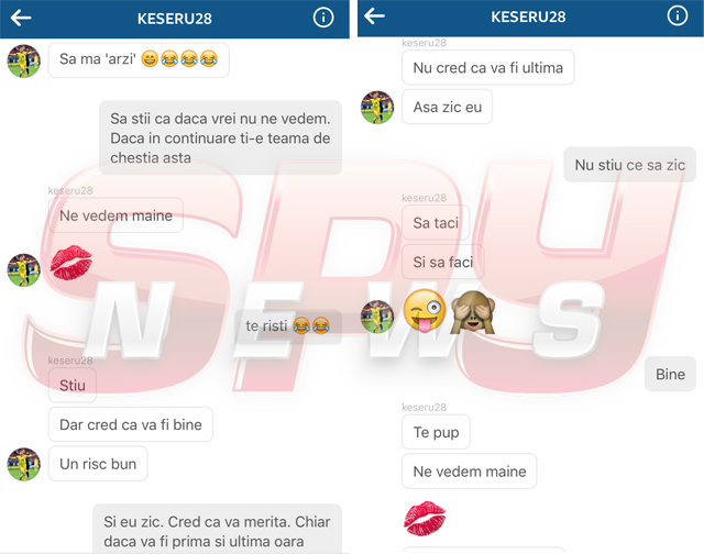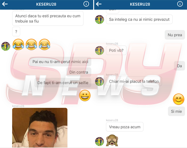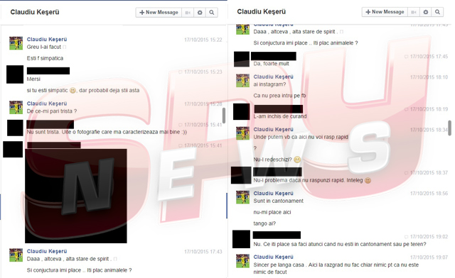În spatele imaginii de bărbat cuminte a atacantului Claudiu Keşeru se ascunde un adevărat Don Juan. Dovadă stau conversaţiile pe care fotbalistul de la echipa naţională le-a purtat cu tânăra blondă cu care şi-a dat întâlnire la ceas de seară. Reporterii SPYNEWS.ro au intrat în posesia unor conversaţii cu iz erotic de-a dreptul halucinante.