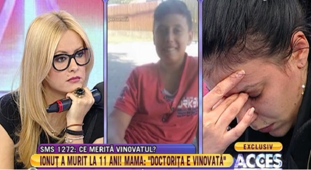 Ionuţ Gheorghe este un băieţel de 11 ani care s-a stins din cauza peritonitei şi a şase ulcere perforate. La doctor, băiatul a primit o pastilă de balonare. La câteva zile după consultaţie, durerile l-au răpus. Familia Gheorghe este de părere că doctoriţa care l-a consultat este singura vinovată, fapt pentru care femeii i s-a întocmit un dosar de ucidere din culpă.