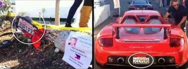 După accident o serie de analize şi speculaţii au înconjurat acest caz. Se pare că numărul de înmatriculare al maşinii în care s-a urcat Paul Walker nu este acelaşi cu cel găsit la maşina arsă. Numărul de înmatriculare depus între florile şi lumânările în memoria actorului este total diferit cu cel al Porche-lui în care Paul s-a urcat înainte de accident.