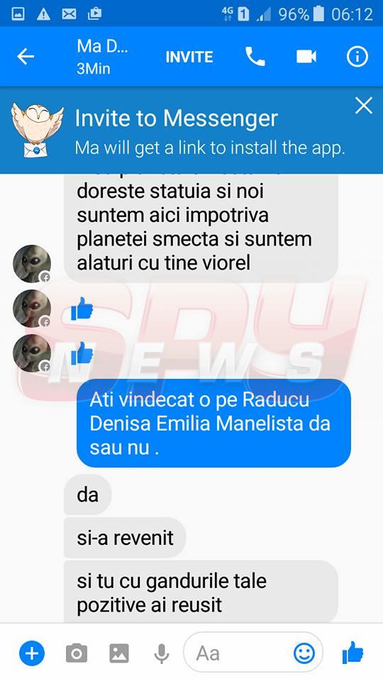 Viorel B. este personajul despre care SPYNEWS a dezvăluit, recent, că o terorizează pe Denisa Emilia Răducu, alias Denisa Manelista (vezi articolul aici). Diagnosticată cu o boală cumplită, artista a fost asaltată cu mesaje scandaloase de individul din Ialomiţa care se crede "Maestrul şi stăpânul lumii". "Maestrul" Viorel i-a transmis Denisei că singura ei şansă de a supravieţui e să se mute cu el, pentru a o trata cu dragostea şi energia lui: "Denisa, (...) singura şansă a ta sunt eu, Viorel din Slobozia - Ialomiţa, cu condiţia să te muţi la Slobozia până nu va intra altă femeie în viaţa mea şi atunci nu mai pot face nimic. Grăbeşte-te, sper ca fanii tăi să nu mai jignească, că eu îţi vreau binele. Ce spun este demonstrat ştiinţific. Cei care mă jignesc înseamnă că nu ştiu ce este bioenergia".