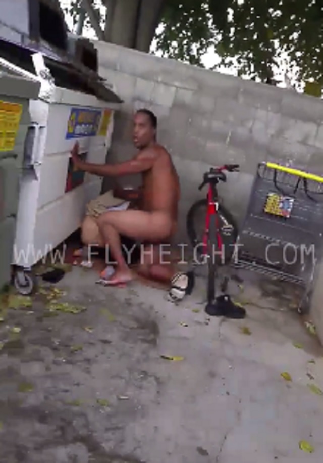 Omul a văzut o blondă și un negru știrb care încercau să facă sex lângă tomberon. Individul înfierbântat era dezbrăcat de tot, iar blonda avea pantalonii în vine.