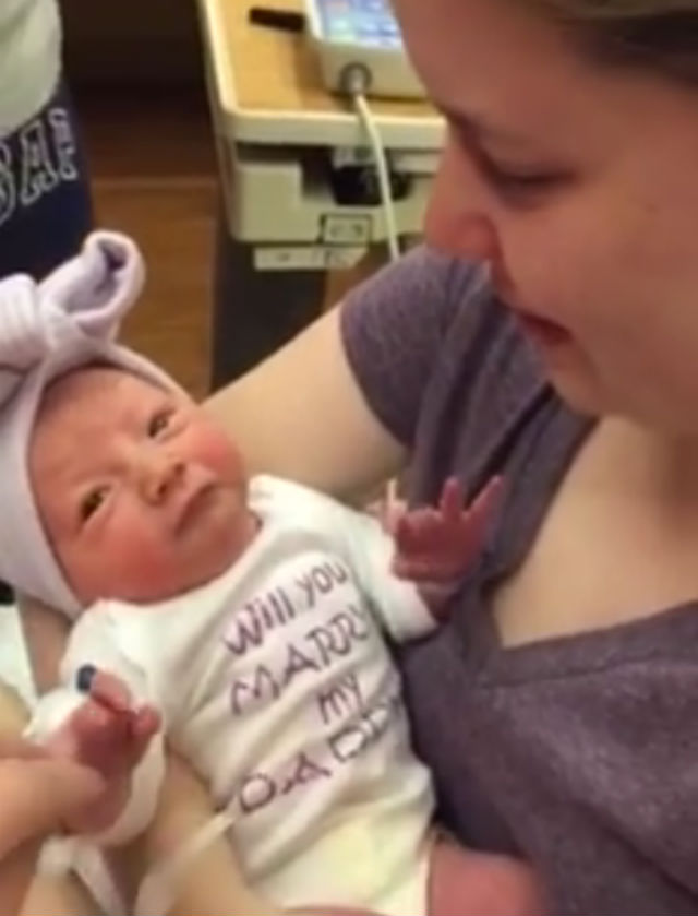 Pentru că cele două se aflau încă în spital, Miles a găsit o modalitate inedită. El a inscripţionat pe hainuţele fetiţei sale întrebarea : "Vrei să te căsătoreşti cu tatăl meu?". Triston a izbucnit în lacrimi în secunda următoare şi i-a răspuns afirmativ.