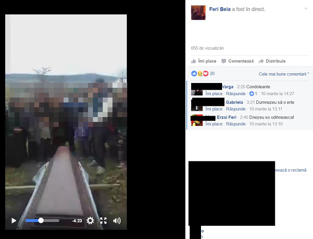 Feri Bela, un pastor care slujeşte la o biserică din Târgu Mureş, a reuşit să şocheze sute de oameni zilele trecute, când a transmis în direct, pe Facebook, o ceremonie funerară. Astfel, pastorul s-a apucat să transmită pe contul său de Facebook, în toiul zilei, slujba religioasă pe care susţinut-o într-un cimitir, oferind publicului imagini sinistre, cu sicriul care era coborât în groapă şi oamenii care jeleau mortul.