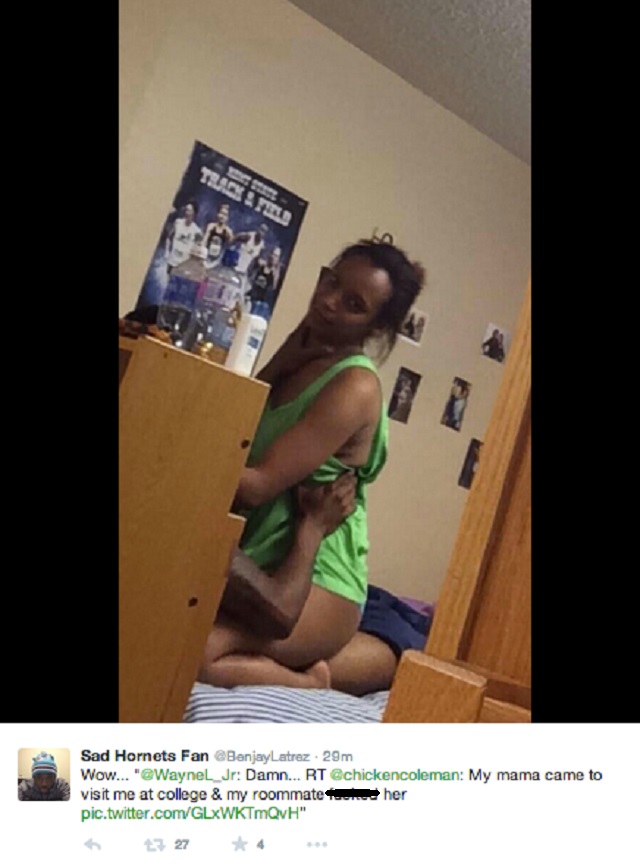 O fotografie a ajuns virală după ce un student a avut parte de o imagine şocantă cu mama sa. Aceasta trebuia să-l viziteze în cămin, dar se pare că el lipsea, aşa că şi-a făcut de lucru în timp ce îl aştepta, culcându-se cu colegul său de cameră care probabil nu era absent la momentul sosirii.